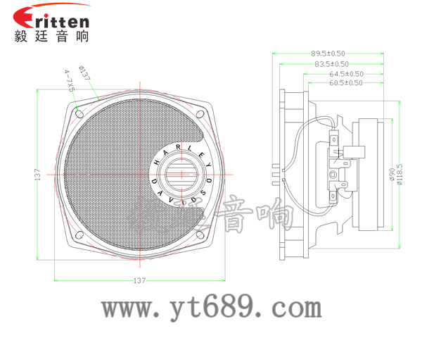 5.25寸外磁鐵盆架全頻喇叭,采用了高性能釹鐵硼永久磁,性能穩定;