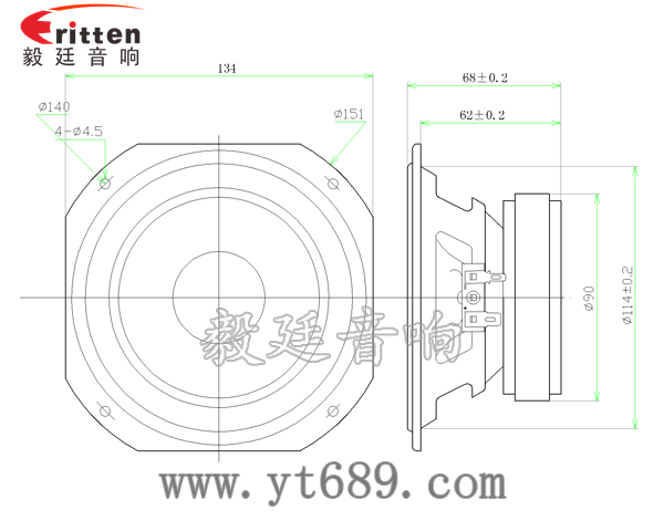 5.25寸方形鐵盆架中低音喇叭,采用的是高性能鐵氧體磁鋼,為揚聲器在大動態工作時提供充足動力,充分展示動態特性好的特點,磁場密度高,磁性強,有利聲音的更好爆發力