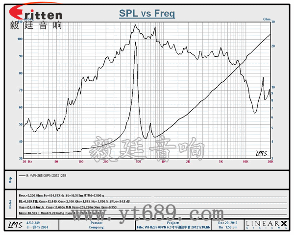 此款6.5寸50瓦多媒體中低音喇叭,音域455Hz~8.5KHz,超高的靈敏度達到95dB,低頻極震撼,強勁有力,足以讓廣大發燒友為之瘋狂。