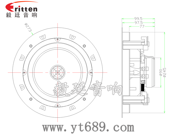 這款天花喇叭的外觀防塵罩,用的是高密度金屬網(wǎng)罩進過環(huán)保烤漆工藝,手感平滑,不褪色、不生銹、不氧化、超窄邊有圓形和正方形兩種防塵罩形狀,帶八個超強磁吸鐵,可吸性強,外觀大氣、精美,是毅廷音響工程師精心研發(fā)的一款超完美的8寸天花吸頂喇叭。