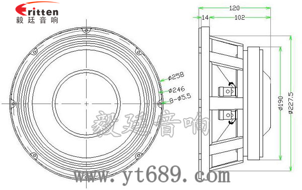 它是由10寸汽車改裝重低音喇叭專業生產喇叭廠家-毅廷音響生產,為打造更高質量的產品,迎合廣大客戶的需求,不斷的努力創新,并加強在軟硬件方面的技術改進,它的額定功率為300W,靈敏度高達94,大力推薦給廣大客戶。