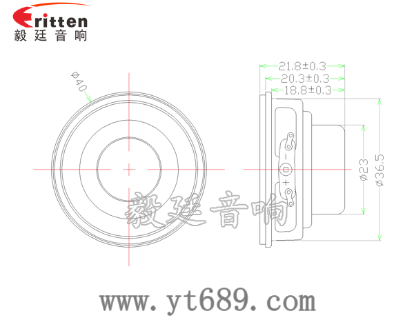 40mm圓形鐵盆架內磁全頻喇叭,采用的是高性能稀土高強磁,音色優美,厚實;