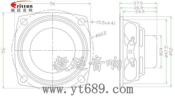 56mm異型鐵盆架內(nèi)磁全頻喇叭,具有穩(wěn)定的稀土高強磁,音色清晰、飽滿;