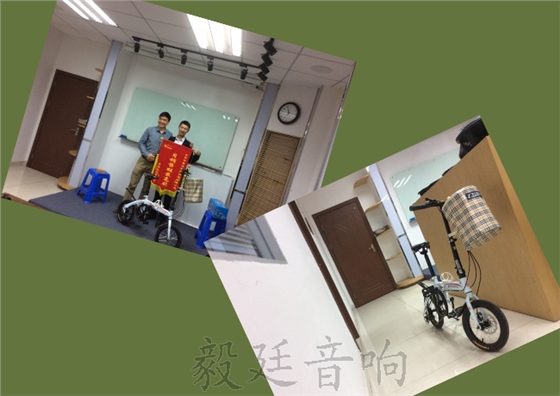 外貿部的朱劍友,有著秀氣的外表及儒雅的內涵。每一日你說付出的代價都比前一日高,因為你的生命有消短了一天,所以每一日你都要更積極。今天太寶貴,不應該為酸苦的憂慮和辛澀的悔恨所銷蝕,抬起下巴,抓住今天,它不再回來。男兒當自強,責任勇擔當。他肯努力、肯改變、肯擔當,看到這輛價值999巧小可愛的自行車就是對他拿到毅廷喇叭廠12月份醉高銷售額的獎勵,對他的肯定!可真是后生可畏呀!