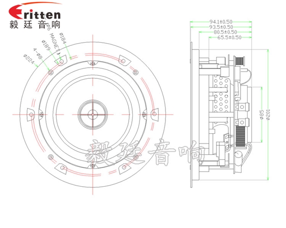 4寸20芯10瓦全頻多媒體音箱喇叭