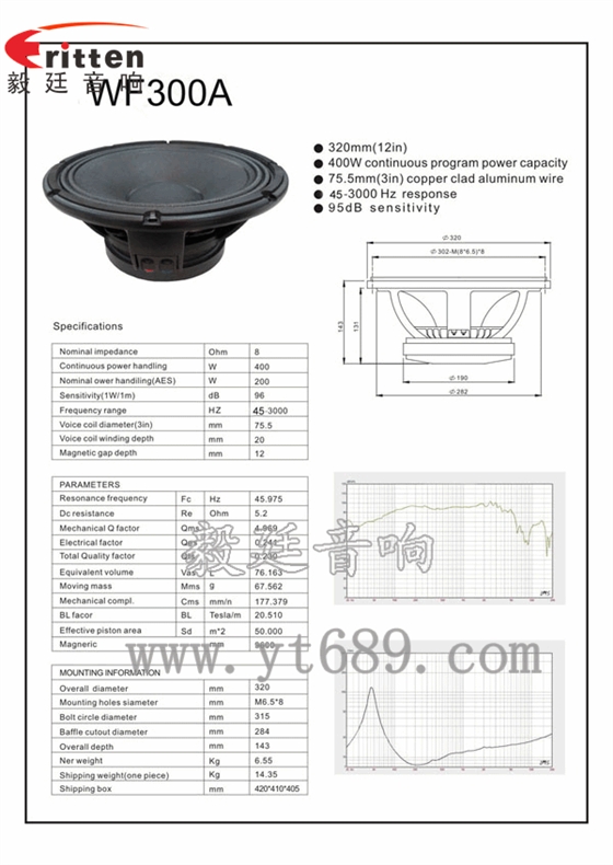 ★靈敏度(SPL):95dB(1M/1W)