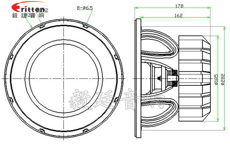 12寸圓形重低音喇叭,采用了高質量度鋁盆架,加強加寬壓鑄磨砂,承載著大型磁路和振動系統,保證了大功率工作時的穩定性;