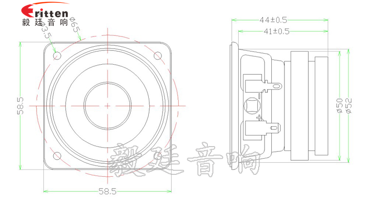 58mm方型外磁雙磁重低音喇叭,高性能鐵氧體,靈敏度高,質感強、低頻震撼;