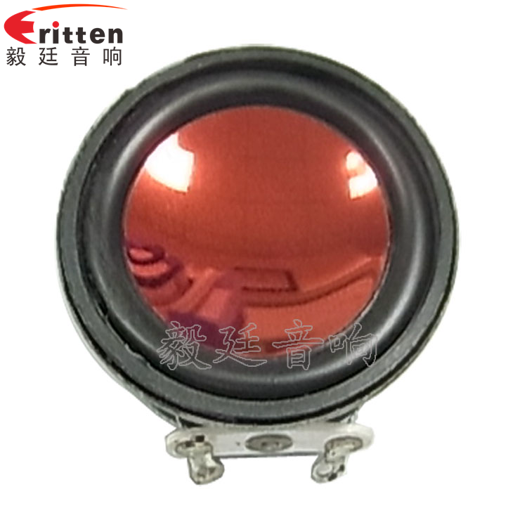 36mm鐵盆架橡膠邊紙盆紅色防水鍋底帽內磁全頻喇叭,它用的是方便安裝、方便操作、牢固性好的帶U鐵一體式圓形鐵盆;