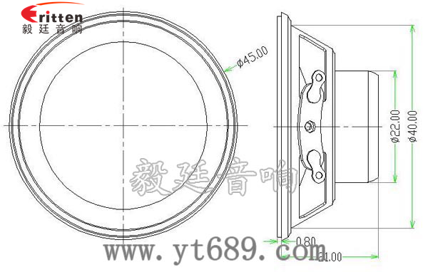 45mm圓型鐵盆架內磁全頻喇叭,采用的是具有穩定性稀土高強磁,音質悅耳;