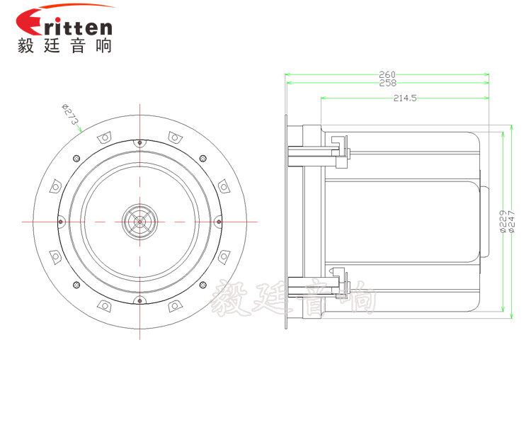 此款高音可旋轉8寸天花板喇叭,頻寬為110Hz~20KHz,音質清晰,穿透力強,主要用于辦公場所天花上,酒店大堂,等等高檔場所,是由毅廷音響工程師精心研發的一款超級完美的天花喇叭,值得推薦。