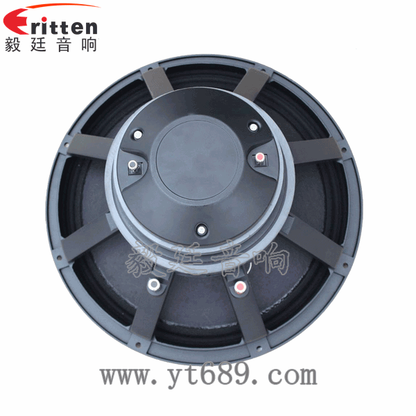 15寸圓形鑄鋁盆架外磁雙磁重低音喇叭,鑄鋁結構支架,以精鋼沖壓成型,表面涂覆精密的雅典黑烤漆,穩固牢靠,聲音更具穩定性。