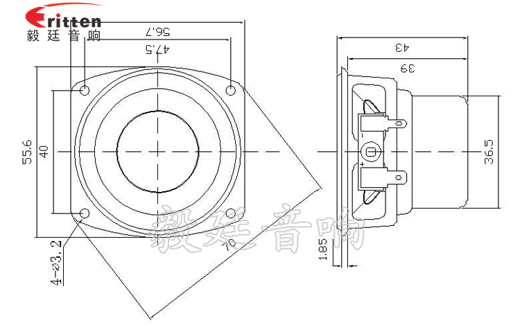 56mm異型鐵盆架內(nèi)磁全頻喇叭,采用的是高品質(zhì)稀土高強(qiáng)磁,使音色完美,飽滿;