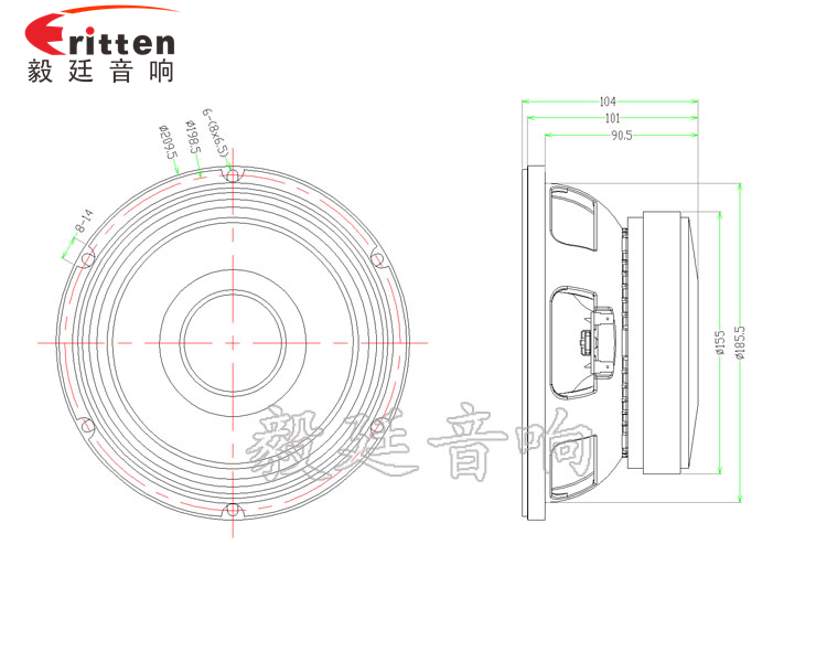 此款核心材料部份更是經過我們毅廷喇叭專業工程團隊經過不斷的試驗、精心挑選出來的,音圈采用的是50芯的耐高溫TIL材質,音盆更是采用了音色自然、材質較輕、靈敏度高、常用于頂級HIFI系統的全紙盆8寸舞臺中低音喇叭是一款8歐100W的大功率喇叭,它的最大功率達200W左右,頻;